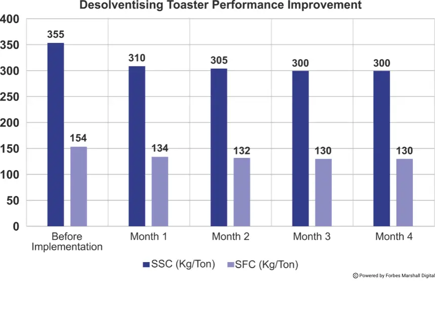 The specific steam consumption (SSC) and condensate recovery factor (CRF) of desolventising toaster (DT) and heater varies by 20% resulting in increased costs.
