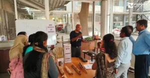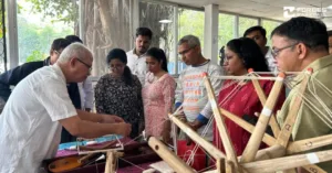Led by Mr Madhav Sahasrabudhe, this workshop showcased the Charkha as not just a spinning wheel but a symbol of India’s rich heritage and a practical pathway to eco-friendly living. Mr Sahasrabudhe, who hasn’t purchased a single piece of clothing in 12 years, shared his inspiring journey of spinning yarn from loose cotton, weaving it into cloth, and stitching his garments – a testament to the power of traditional practices in promoting sustainability.