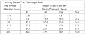 cause steam loss of 218 tons / year, increasing fuel consumption and CO, emissions. The table below illustrates the steam loss through a leaking trap.