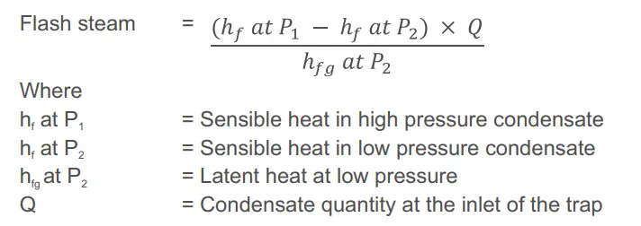 Therefore when condensate at 7barg is flashed at atmospheric pressure 129.6 kilograms/hour of flash steam will be generated, leaving behind 870 kilograms/hour of condensate.