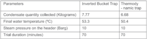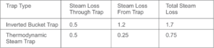 The data in the table below from a process plant highlights the impact of using thermodynamic steam traps versus inverted bucket steam traps on main lines.