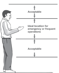 Key accessories which require frequent operations or operations during an emergency, like isolation valves should always be located at working height (see Illustration alongside).