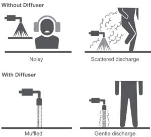 A diffuser is a compact unit designed to be fitted at the outlet of the thermodynamic steam trap discharging to the atmosphere. It dampens the velocity of condensate discharge, thereby eliminating the blast of condensate making it safer for plant personnel in the vicinity.